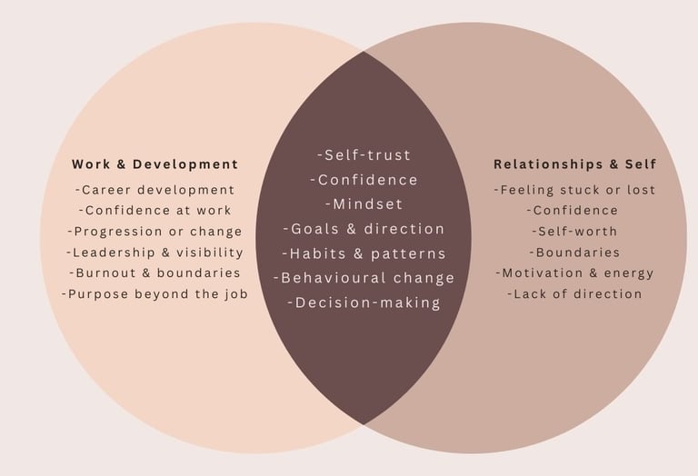 Coaching helps you step back, notice patterns, and recognise beliefs or habits that may be quietly holding you back. With a different perspective, decisions often feel clearer and more aligned.
