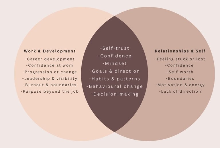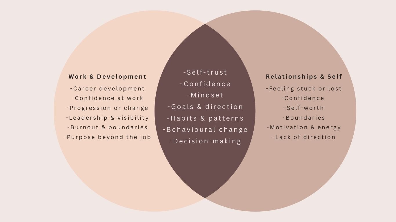 Coaching helps you step back, notice patterns, and recognise beliefs or habits that may be quietly holding you back. With a different perspective, decisions often feel clearer and more aligned.