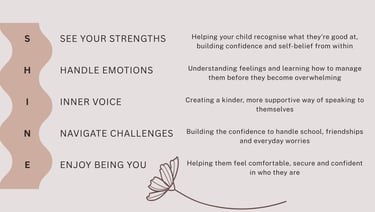It’s a simple, child-friendly approach that helps children understand themselves, develop confidence, and learn how to handle what they’re feeling in a way that feels manageable.